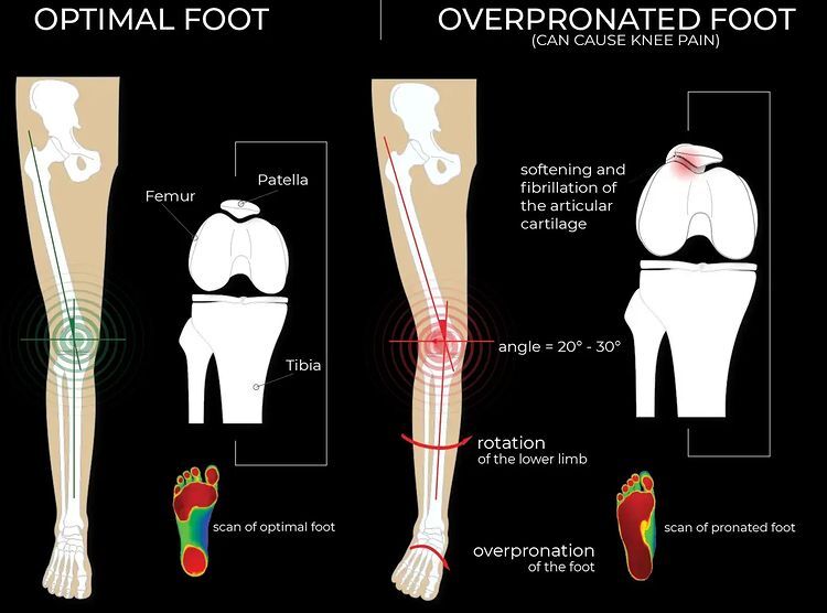 با افزایش انحراف داخلی شست، میزان پرونیشنی (چرخش داخلی پنجه پا ) که در پا ایجاد می شود افزایش می‌یابد؛ و این به نوبه خود منجر به چرخش داخلی استخوان‌ ساق و درد زانو هنگام پياده روی و دویدن خواهد شد.